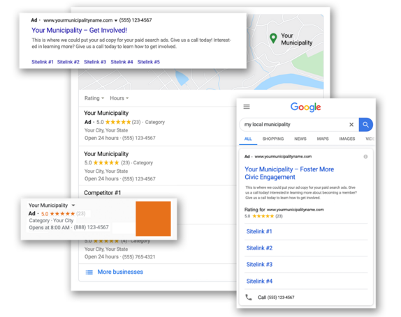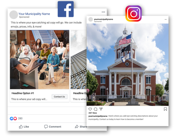 Utilizing Facebook’s advertising platform, we can tap into many different audiences of people on Facebook and Instagram. Social Media advertising has the unique ability to not only target the right Government customer in the area of your choice, but it also allows social interaction between a customer and the Government Entity. People can comment, like, and share your post with other friends and family. Facebook also has the ability to use video and image ads to engage potential customers. Your customers are Facebook and Instagram, and we’ll use these platforms to reach them directly with your messaging.